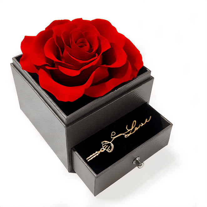 Birth Flower Name Necklace with Eternal Rose Box