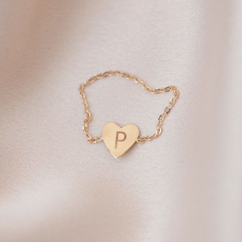 Dainty Heart Initial Chain Ring