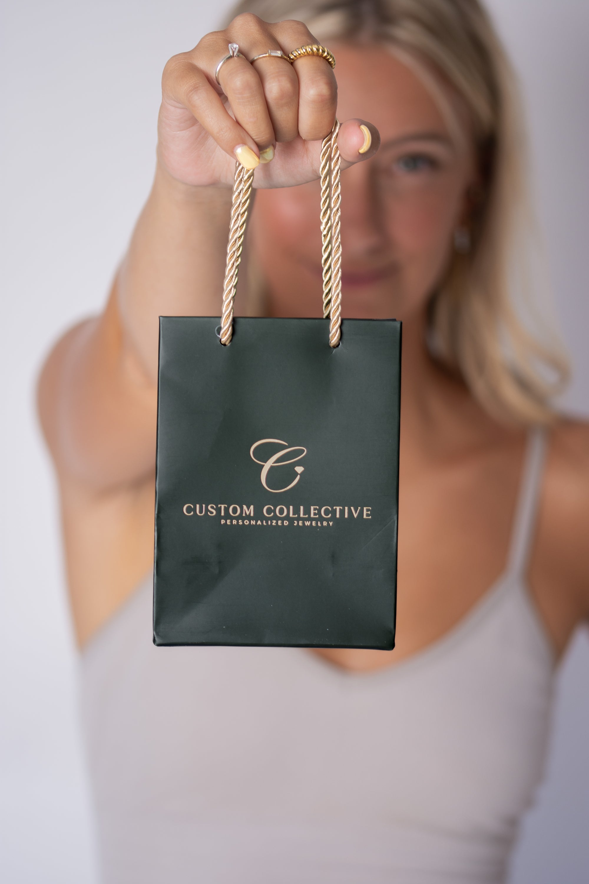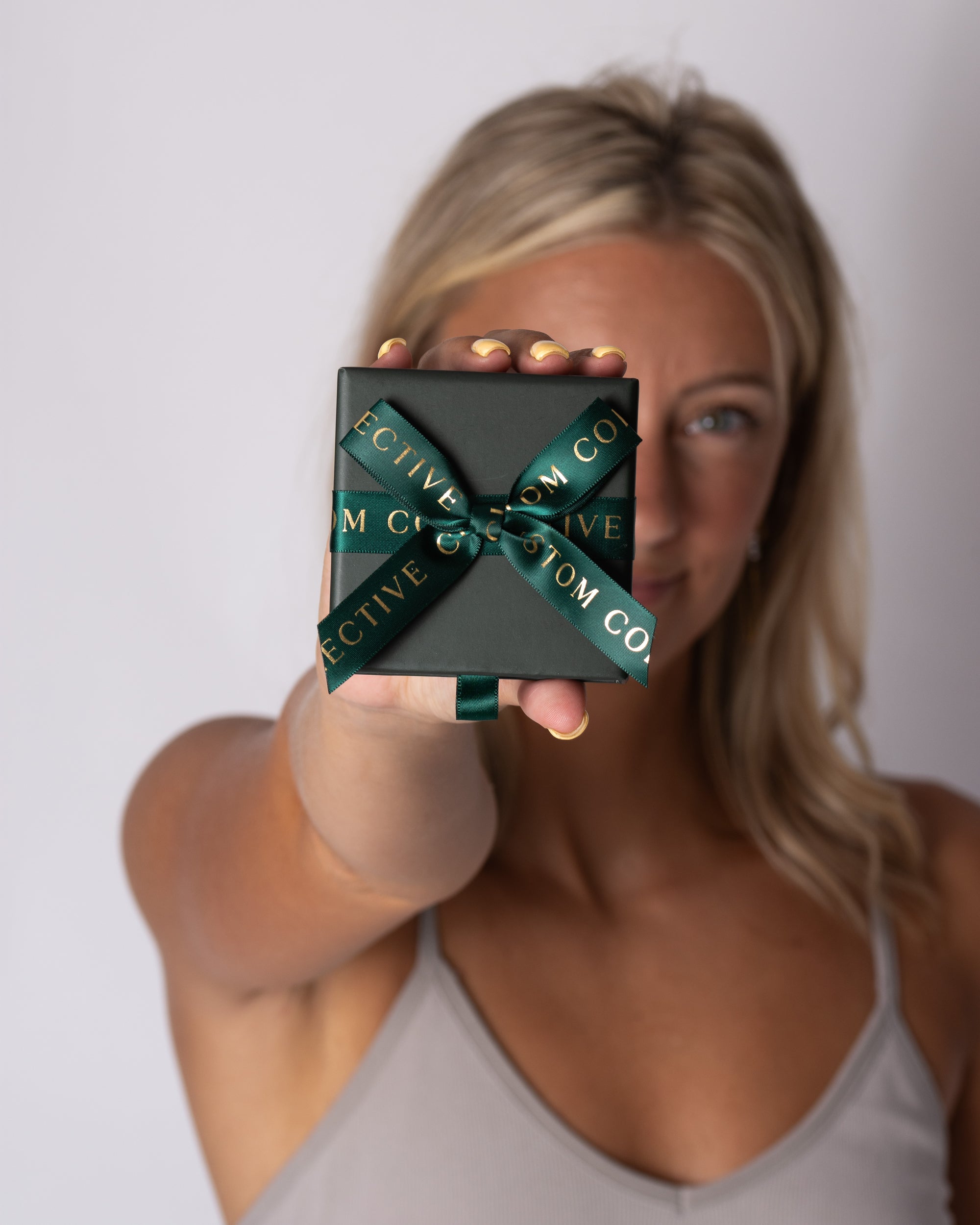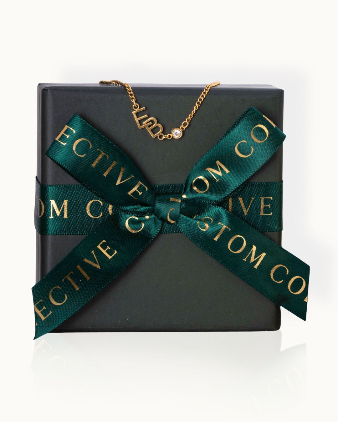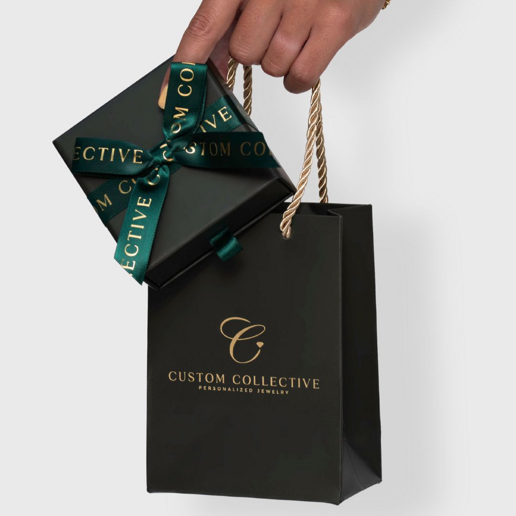 Your jewelry is nestled in our signature gift box, tied with an elegant deep green ribbon in a perfect bow. It's then placed inside our matching keepsake bag, ready to gift as-is with no extra wrapping needed.